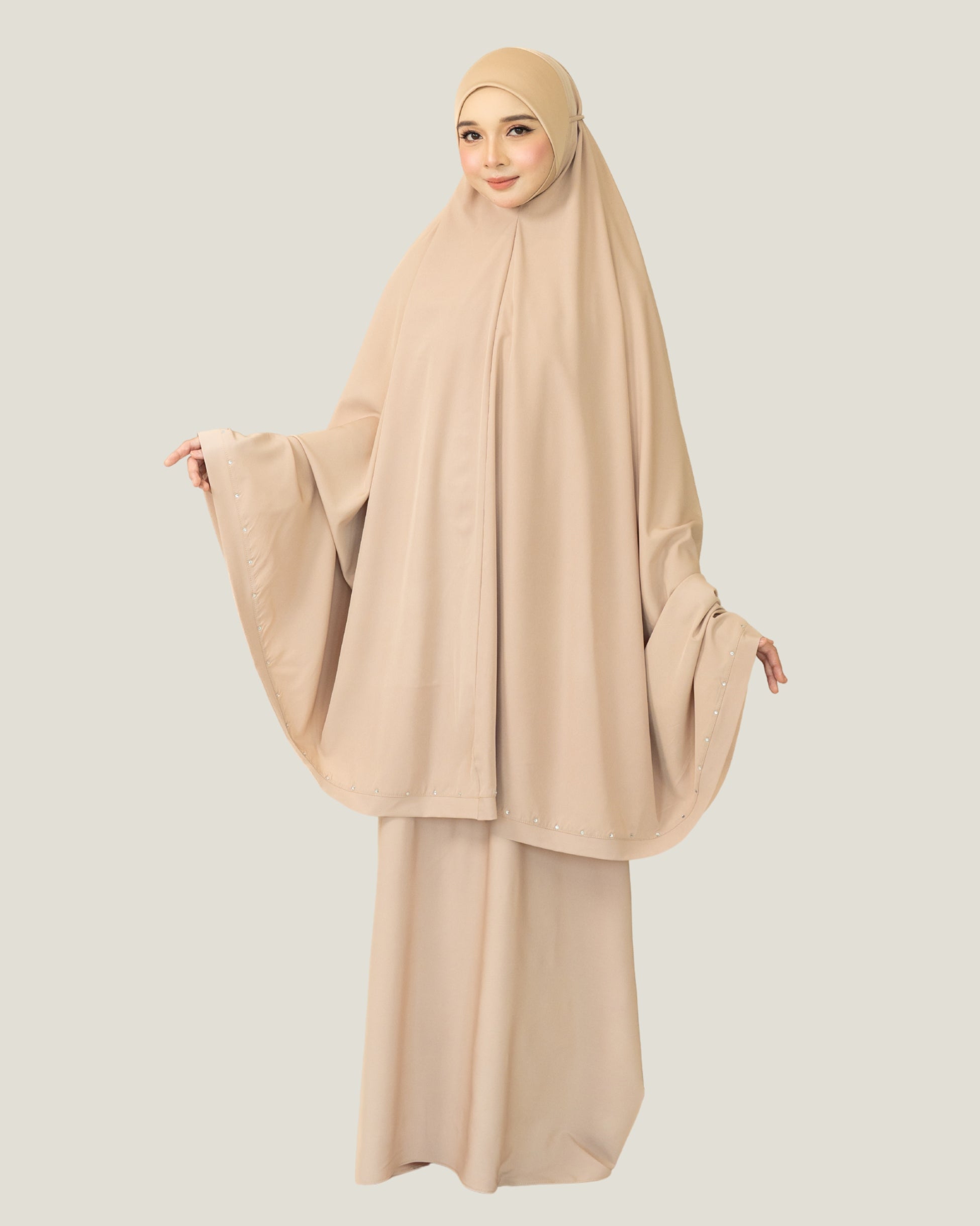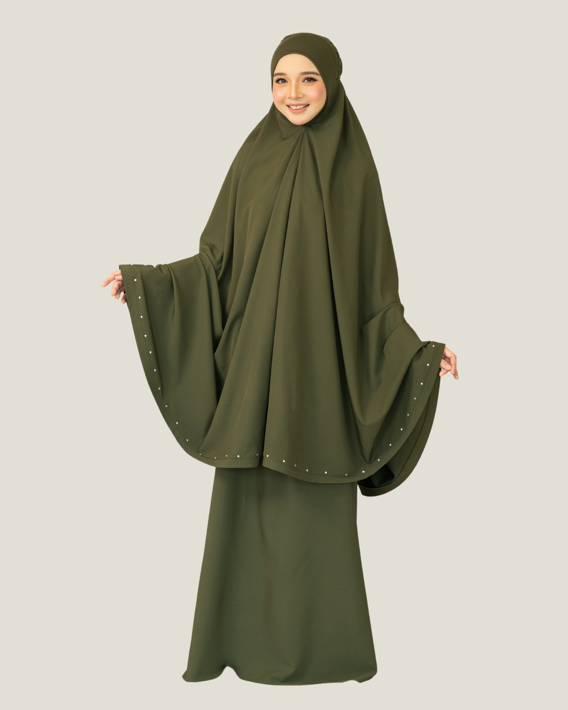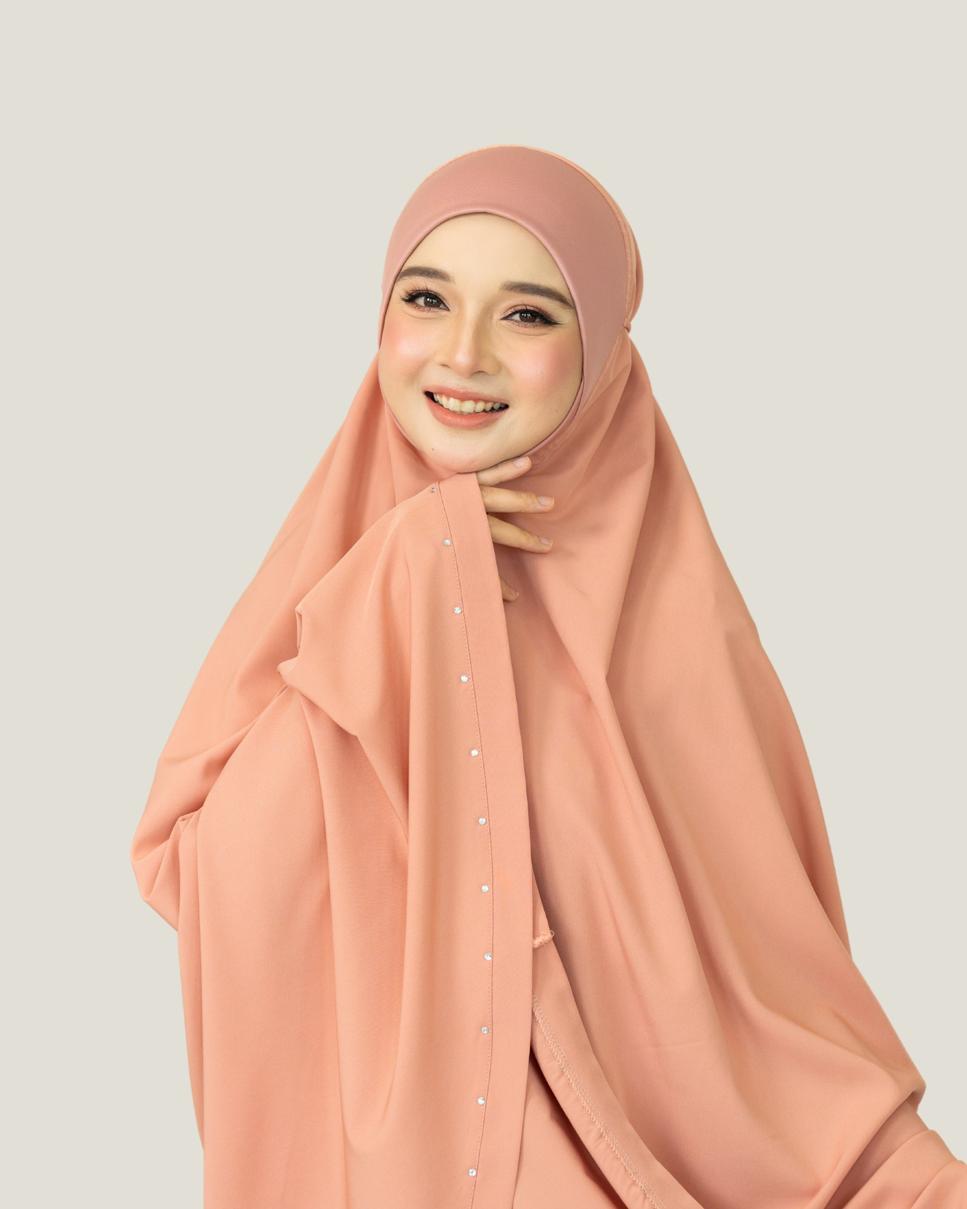 Zerra is a mid-range telekung series, pioneer of the rhinestone embedded design, simple yet elegance. Great for daily wear and best as a gift.